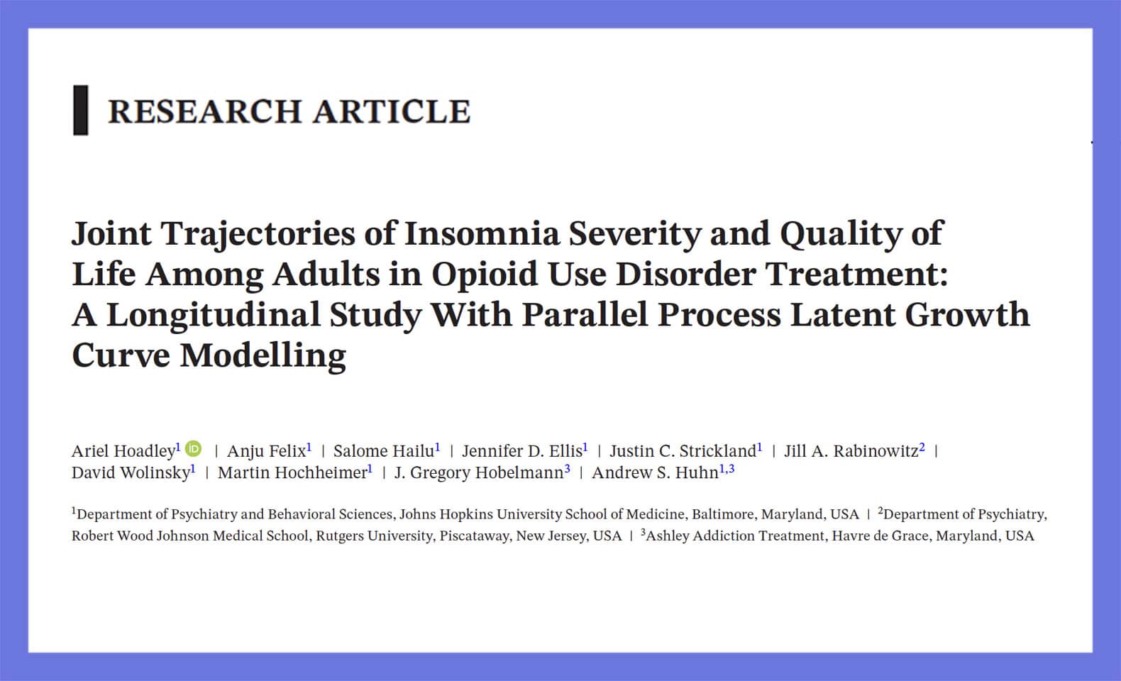 Joint Trajectories of Insomnia Severity and Quality of Life Among Adults in Opioid Use Disorder